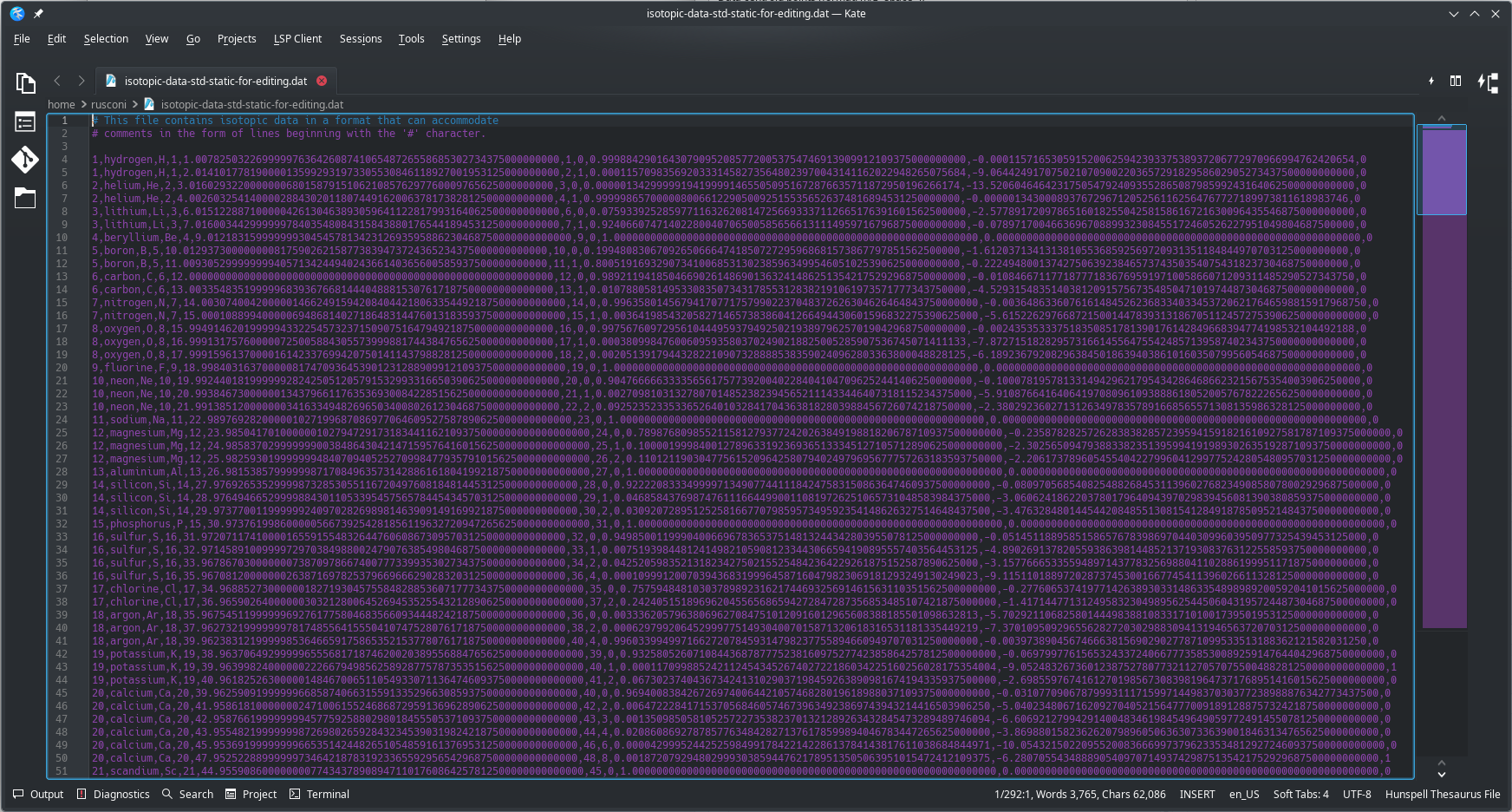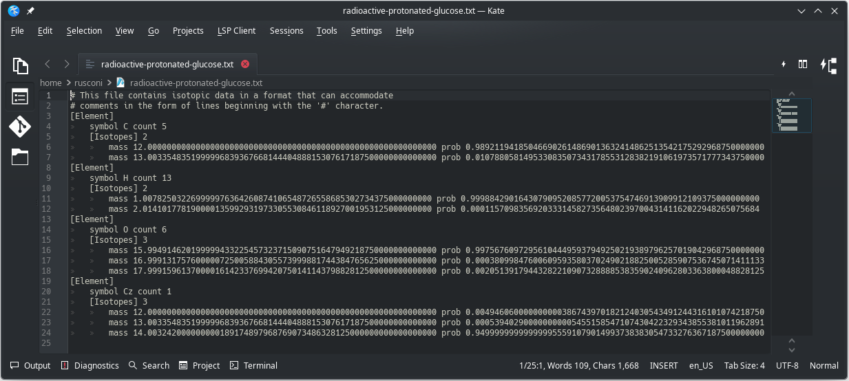 While the previous section showed how to use the static element table from the IsoSpec library, this section shows a way to customize these elemental data for a specific experiment.
