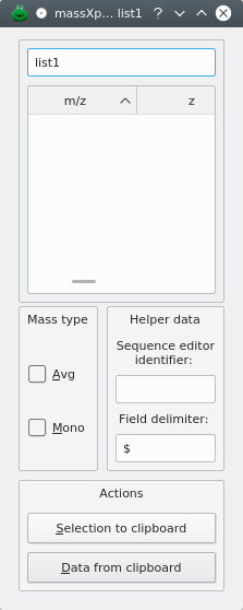 The mass data might be first copied to the clipboard from other software and then imported in the m/z list by clicking Data from clipboard (a drag-and-drop operation would also work).